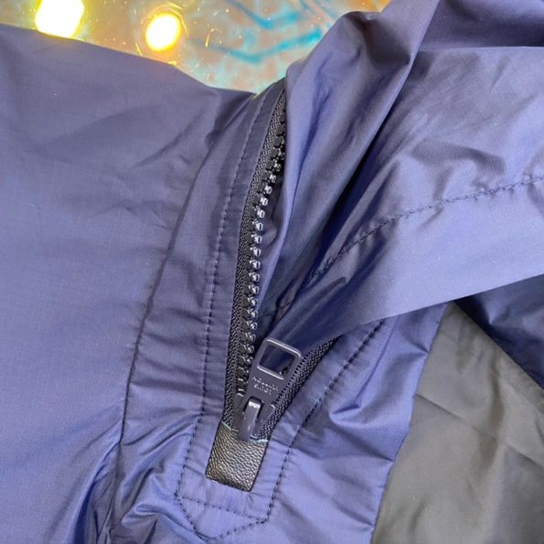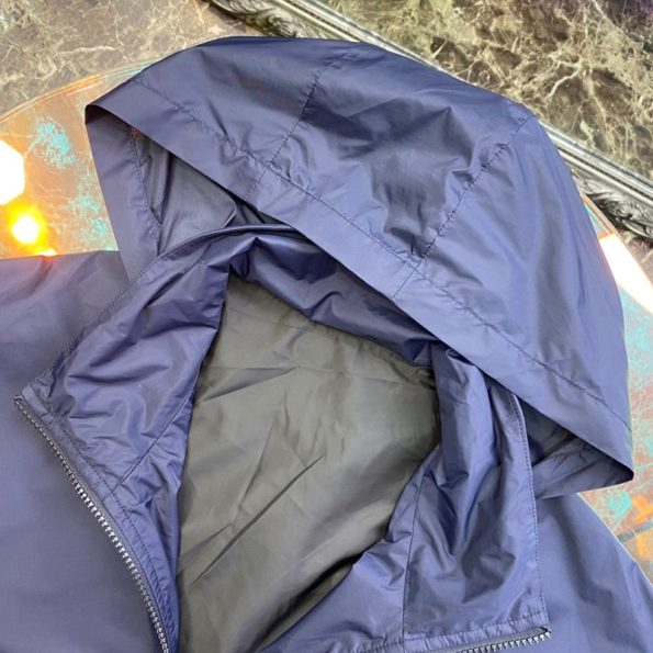完全にリバーシブルなこのウインドブレーカーは、エレガントで現代的な外観をしています。