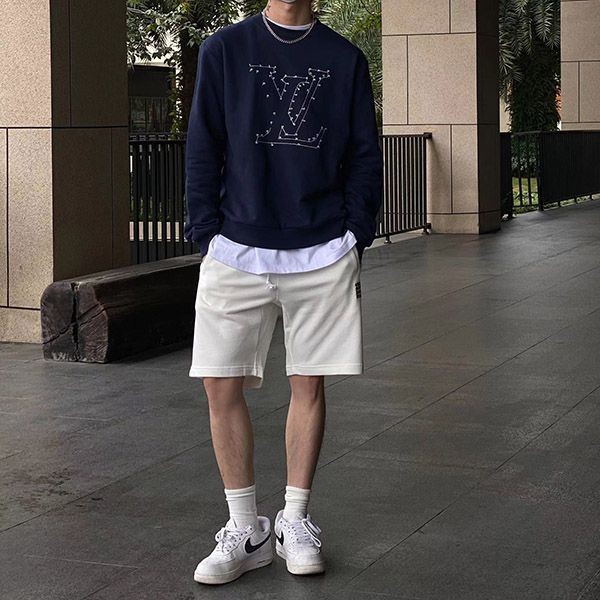 ルイヴィトン LV ロゴ ステッチプリントスウェットシャツ 偽物 ネイビー
