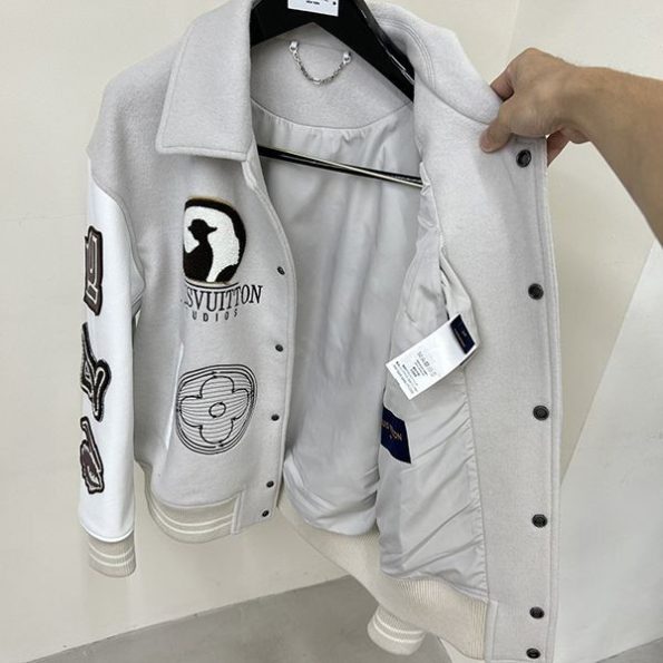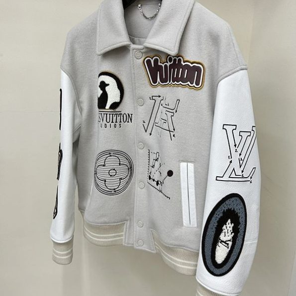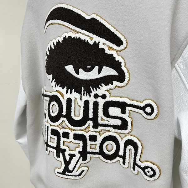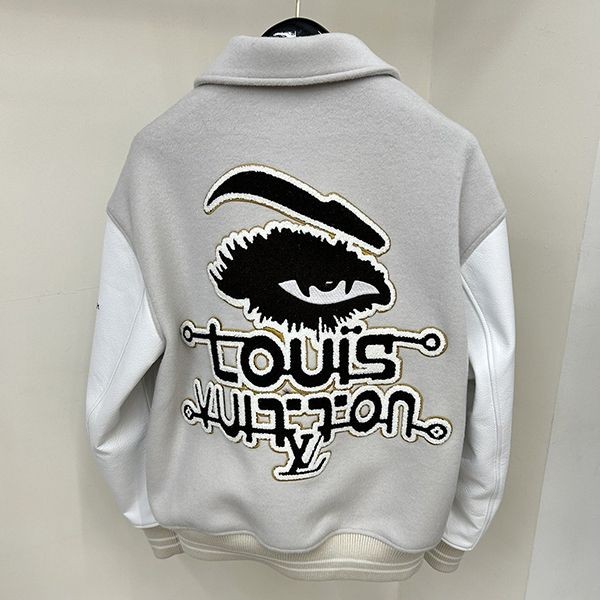 2023新 ルイヴィトン 偽物ウールパッチワーク牛革袖刺繍メンズ野球ジャージ自分へのご褒美に、