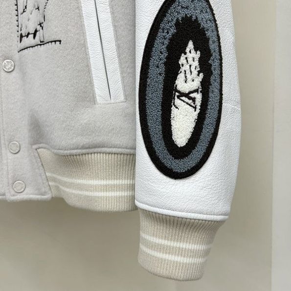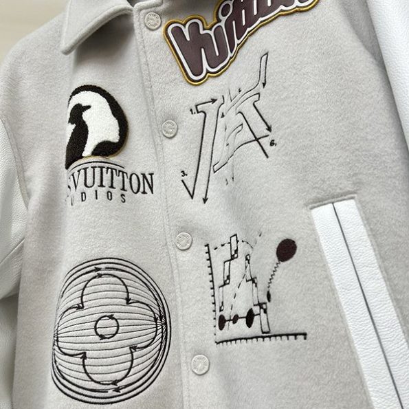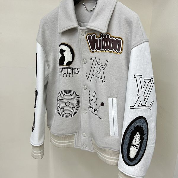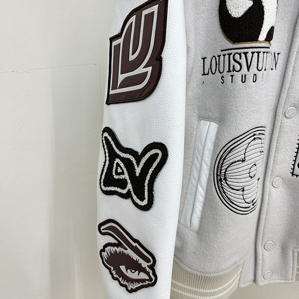 2023新 ルイヴィトン 偽物ウールパッチワーク牛革袖刺繍メンズ野球ジャージ vuo04225