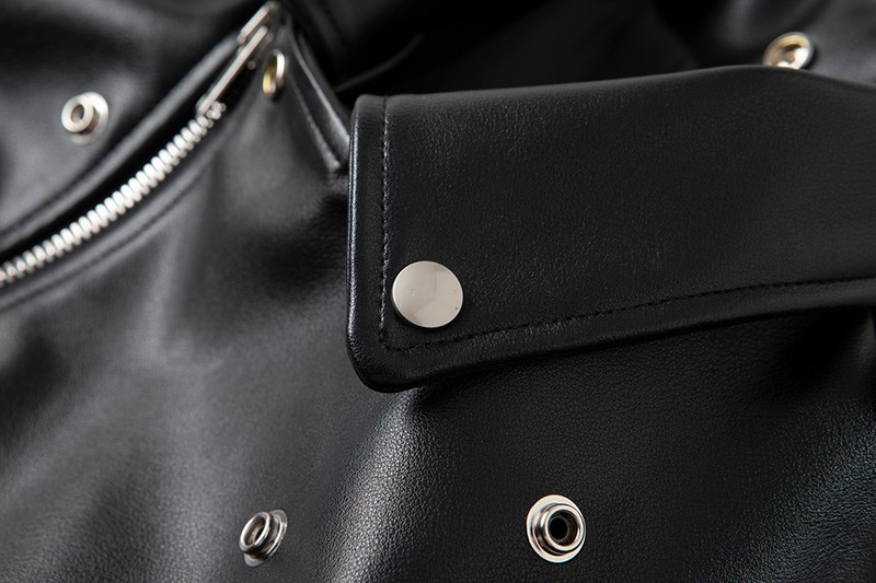 ブラックのソフトナッパを使用した洗練されたジャケット。シャツスタイルの襟、フロントにメタルボタン留め、フラップ胸ポケット、フロント縦型ポケット、袖口にボタン付き長袖、裏地付き。