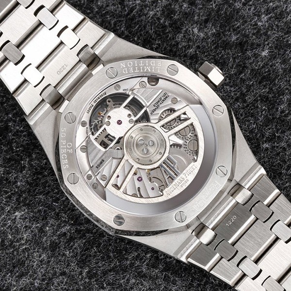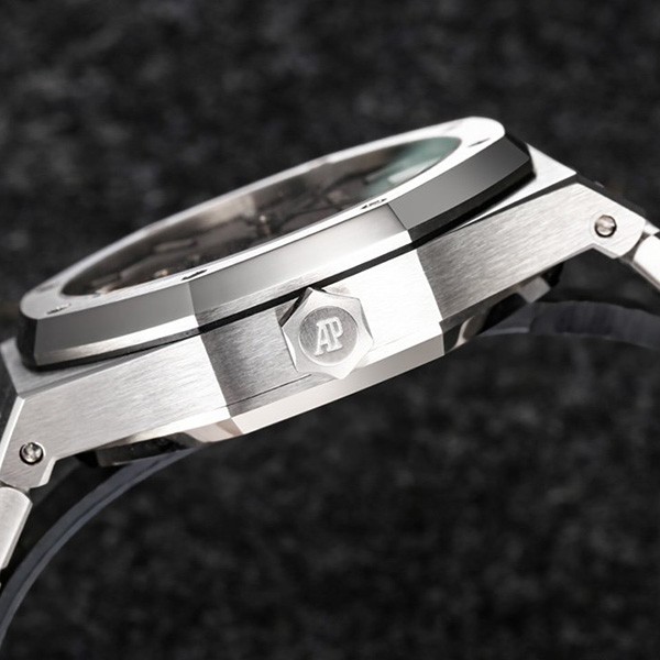 蓄光処理を施した18Kホワイトゴールドのアプライドアワーマーカーとロイヤルオーク針。