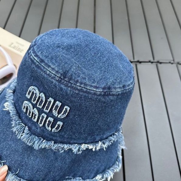 可愛い ミュウミュウ ロゴパッチ デニム バケットハット 偽物 myl12329
