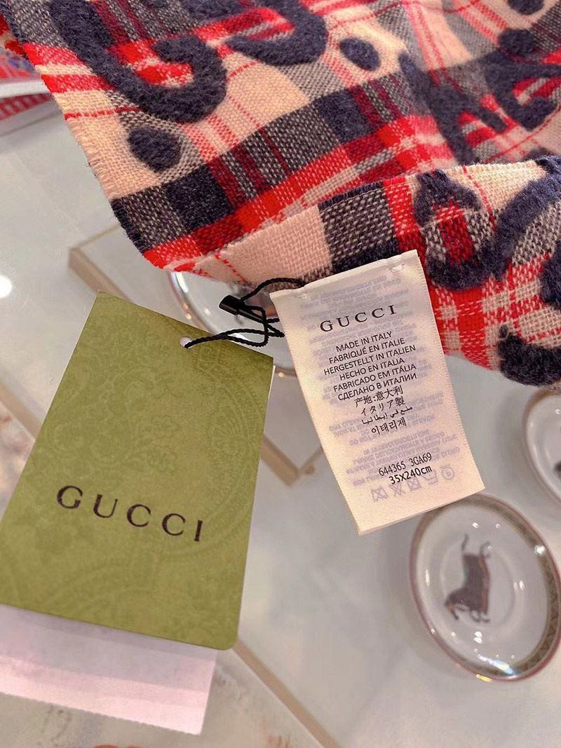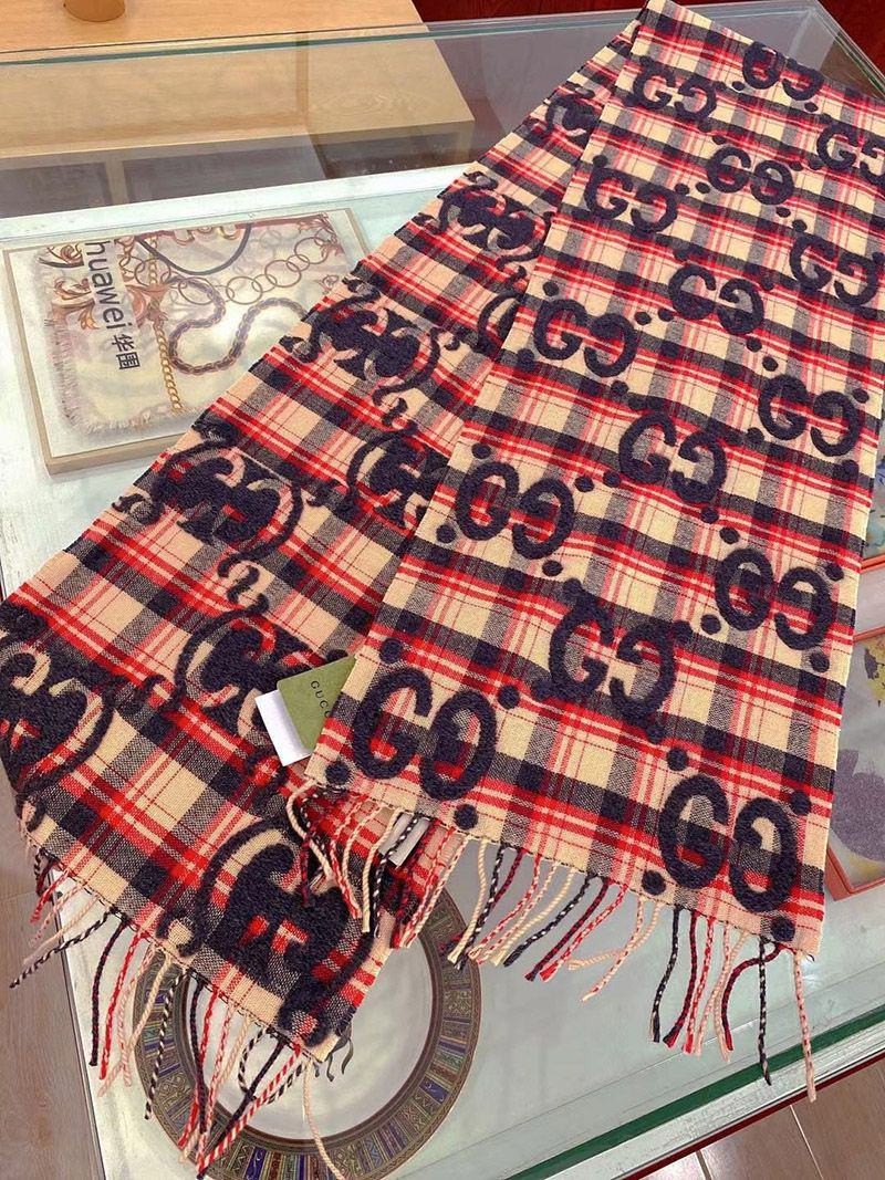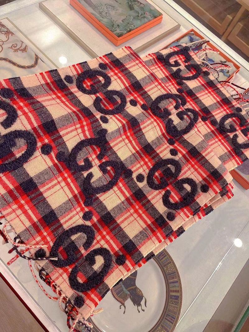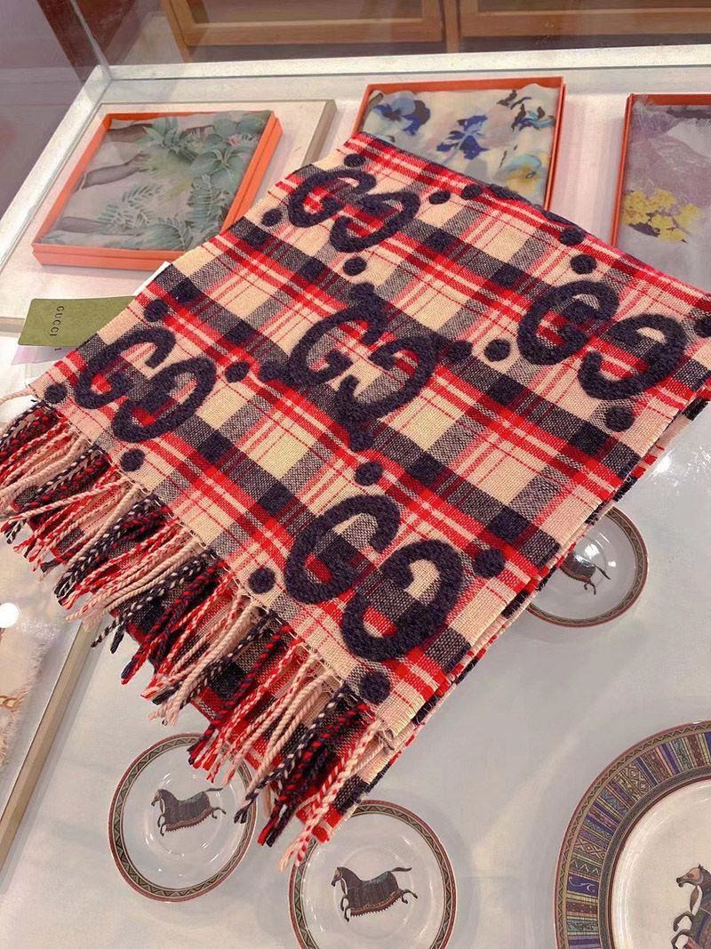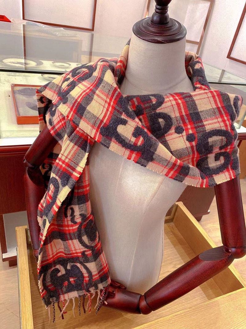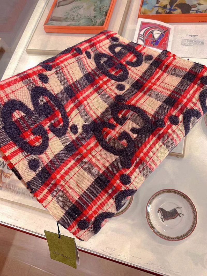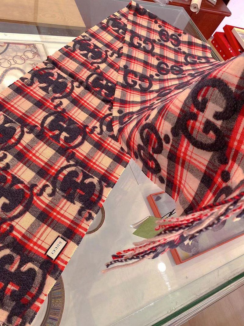 稀少 グッチ GGジャカード チェック ウール スカーフ guq83444