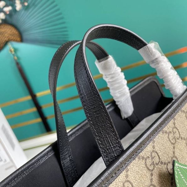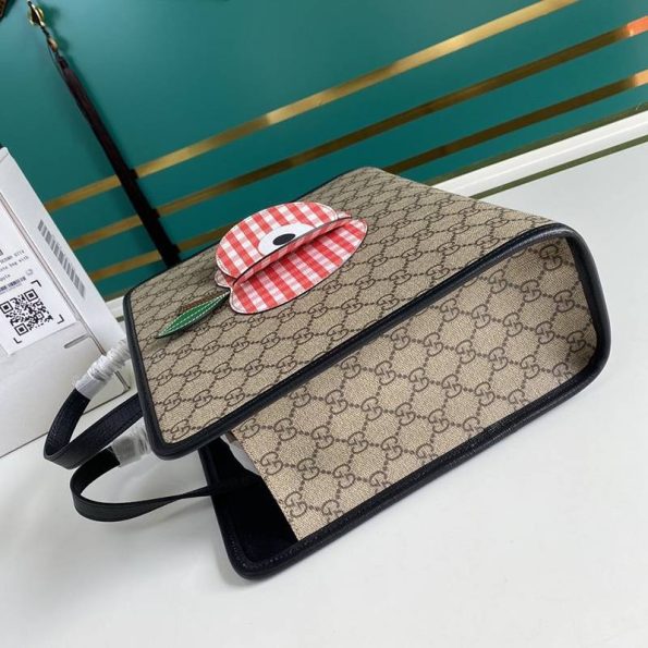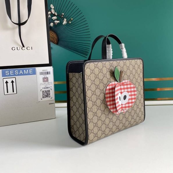 ベージュ&エボニー GGスプリーム キャンバスに、3D アップル ギンガムチェック ディテール