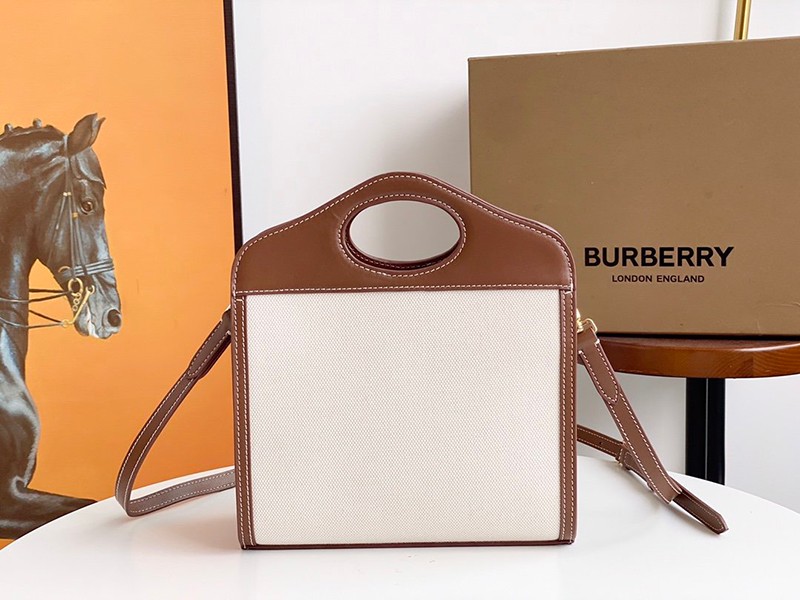 【バーバリー ポケットバッグ 偽物】ミニ ツートン キャンバス&レザー